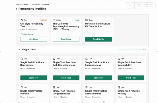 Prepare thoroughly for the CPI personality assessment used in hiring and development contexts—practice with realistic simulations, guided tutorials, and trait-focused exercises.